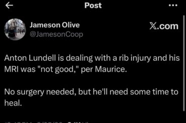 [Jameson Olive] Anton Lundell souffre d’une blessure aux côtes et son IRM n’était « pas bonne », selon Maurice. Aucune intervention chirurgicale…