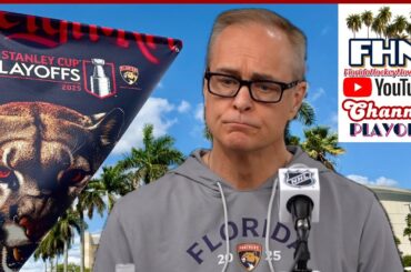 L’entraîneur des Panthers de la Floride, Paul Maurice, parle aux médias après le patinage du matin pour le match 3…