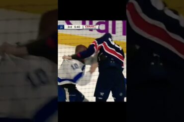 Nikita Zadorov des Canucks de Vancouver casse son bâton pendant le jeu et son coéquipier Quinn Hughes offre le sien…