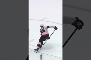 Jake Sanderson des Sénateurs d’Ottawa ne perd pas de temps, enterrant une passe astucieuse de son coéquipier Tim Stutzle à…