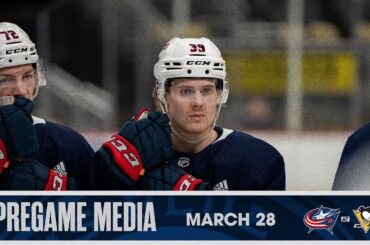 Gavin Brindley et l’entraîneur-chef Pascal Vincent s’adressent aux médias avant le dernier match de la saison au Nationwide Arena. Suivez…