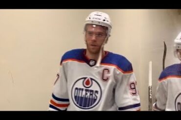 Connor McDavid place la rondelle sur la plaque signalétique du chandail du gardien de but et sous la barre, et…