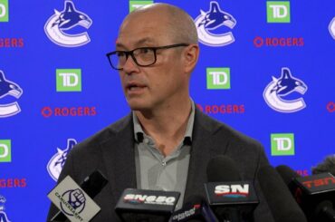 Le directeur général Patrik Allvin rencontre les médias à la suite d’un échange entre les Canucks de Vancouver et les…