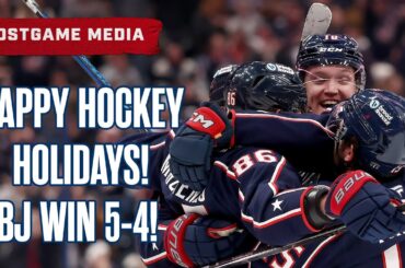 Kirill Marchenko, Dmitri Voronkov, Denton Mateychuk et l’entraîneur-chef Dean Evason s’adressent aux médias après la victoire 5-4 de ce soir !…