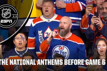 Regardez le chant des hymnes nationaux américain et canadien avant le sixième match de la finale de la Coupe Stanley…