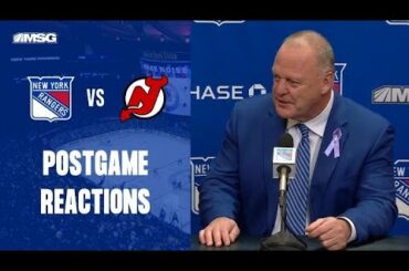 L’entraîneur-chef des Rangers de New York, Gerard Gallant, parle aux médias après la défaite contre les Devils du New Jersey.…
