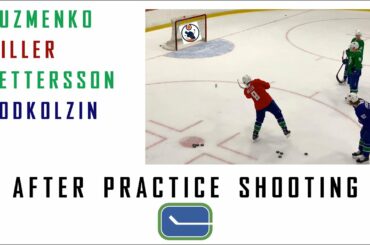 Démonstration de tir à bout portant d’Elias Pettersson, Vasily Podkolzin, JT Miller et Andrei Kuzmenko après l’entraînement ce matin à…