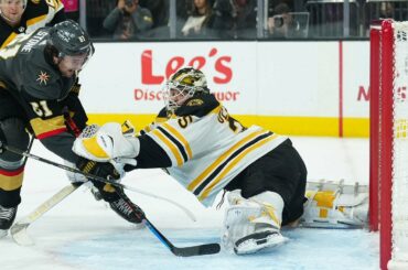 L’attaquant des Golden Knights Mark Stone passe devant en avantage numérique pour donner une avance de 1-0 aux Knights sur…