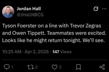 [Hall] Tyson Foerster sur une ligne avec Trevor Zegras et Owen Tippett. Les coéquipiers étaient excités. On dirait qu’il pourrait…