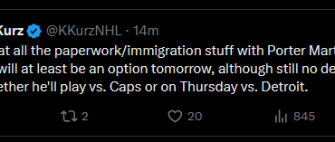 [Kurz] On m’a dit que toute la paperasse et l’immigration avec Porter Martone étaient prêtes. Donc, il sera au moins…