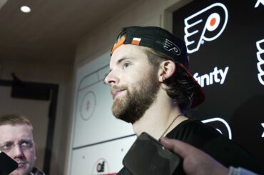 L’entraîneur-chef des Flyers, Rick Tocchet, rencontre les médias après une victoire de 5-1 contre Chicago.