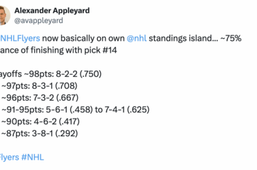 Les Flyers de Philadelphie n’ont pas été mathématiquement éliminés des séries éliminatoires de la Coupe Stanley, mais leurs chances se…