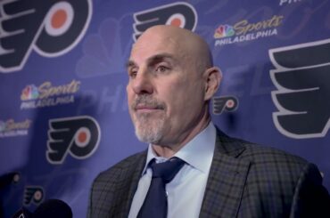 L’entraîneur-chef des Flyers, Rick Tocchet, rencontre les médias après une victoire de 4-3 de l’OS contre Pittsburgh.