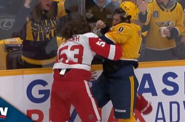 Regardez l’attaquant des Predators de Nashville Filip Forsberg et le défenseur des Red Wings de Détroit Moritz Seider lâcher les…