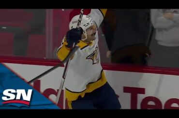 Regardez Filip Forsberg des Predators de Nashville poursuivre sa saison torride en frappant son propre rebond après que le gardien…