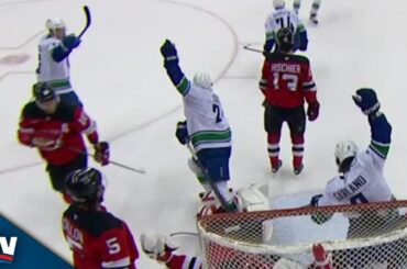 Regardez l’attaquant de Vancouver Canucks, Conor Garland, ramener un rebond dans une course devant le filet pour marquer un but…