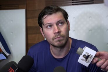 Colton parle avec les médias après avoir été échangé à l’équipe de sa ville natale de Chicago mercredi.