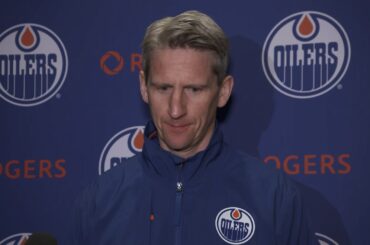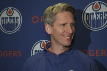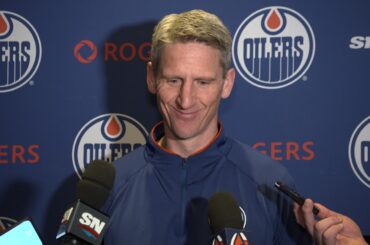 Kris parle aux médias de l’augmentation de l’intensité des entraînements à mesure que la semaine avance et que les Oilers…