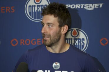 Zach s’adresse aux médias alors que les membres des Oilers s’entraînaient à Rogers Place mardi après-midi.