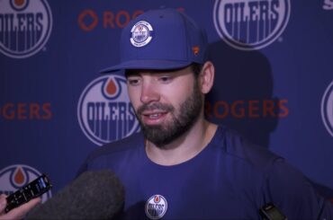 Evan parle aux médias alors que les Oilers continuent d’accélérer le rythme à l’entraînement de mercredi.