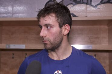 Leon parle après avoir enregistré un tour du chapeau lors de la victoire 5-1 des Oilers contre les Flames, mardi…