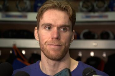 Connor parle après une performance de quatre points lors de la victoire 4-1 des Oilers contre les Red Wings, jeudi.