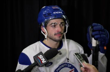 Matt parle aux médias après que les Oilers se soient entraînés dimanche au Downtown Community Arena.