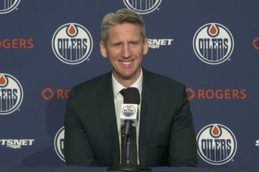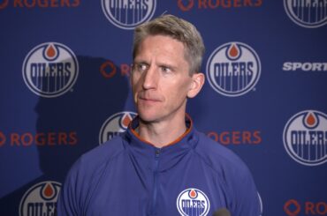 Kris s’adresse aux médias après une victoire de 3-1 contre les Blackhawks qui voit la séquence de victoires des Oilers…