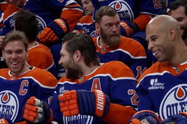 Curtis rejoint Paige sur le banc des Oilers alors que l’équipe se prépare pour un match de la division Pacifique…