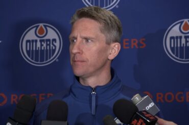 Kris s’adresse aux médias lors de l’entraînement matinal alors que les Oilers affronteront le Seattle Kraken mardi à Rogers Place.
