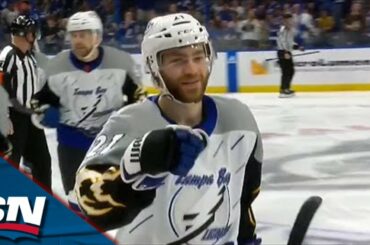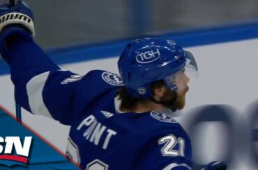 Regardez l’attaquant du Lightning de Tampa Bay, Brayden Point, effectuer une passe aérienne d’Ian Cole et utiliser sa vitesse pour…