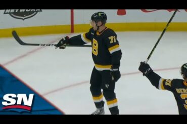 Regardez l’attaquant des Bruins de Boston, David Pastrnak, réussir un coup incroyable en plaçant la rondelle entre les jambes du…