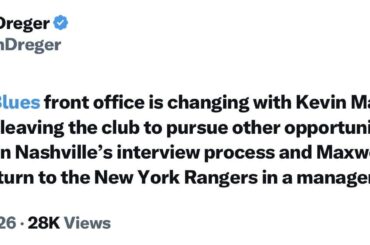 [Dreger] Le front office des St. Louis Blues change avec Kevin Maxwell et Peter Chiarelli quittant le club pour poursuivre…