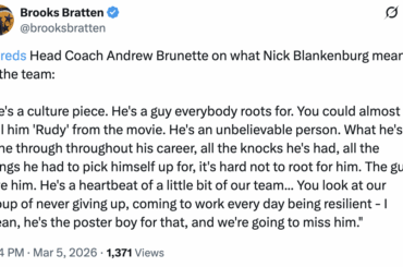 [Bratten] Andrew Brunette à propos de ce que Nick Blankenburg représentait pour l’équipe : « C’est un élément culturel. C’est un…