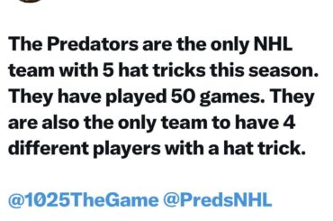 [Herz] Les Predators sont la seule équipe de la LNH à avoir réussi 5 tours du chapeau cette saison. Ils…