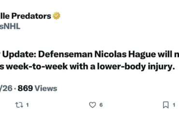 [Nashville Predators] Mise à jour sur les blessures : Le défenseur Nicolas Hague ne jouera pas aujourd’hui contre l’Utah et…