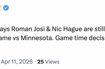 [Kieser] Andrew Brunette dit que Roman Josi et Nic Hague sont toujours en avance sur le match d’aujourd’hui contre le…