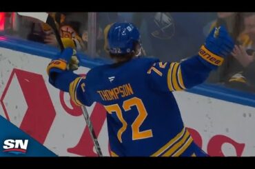 Regardez le Tage Thompson de Buffalo Sabres trouve le fond du filet en trois périodes consécutives pour décrocher son septième…