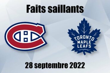 Voici des faits saillants du match préparatoire qui opposait les Canadiens de Montréal aux Maple Leafs de Toronto le 28…