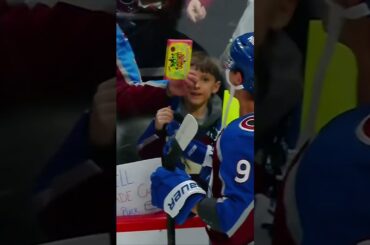 L’attaquant de l’Avalanche Evan Rodrigues et un jeune fan échangent Sour Patch Kids contre une rondelle. Abonnez-vous à notre chaîne…
