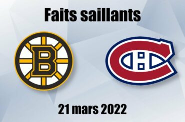 Voici des faits saillants du match qui opposait les Canadiens de Montréal aux Bruins de Boston le 21 mars 2022.…