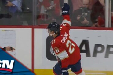 Regardez le défenseur des Panthers de la Floride, Aaron Ekblad, trouver Nick Cousins sortant de la surface de réparation pour…