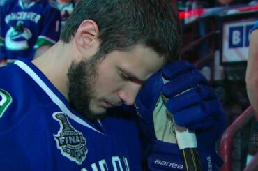 Voici vos Vancouver Caaaaaaaaaaanuuuuucks… L’hymne national canadien interprété par M. Mark Donnelly et l’hymne national américain interprété par M. Richard…