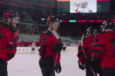 Les diables tentent d’épeler les noms de joueurs passés et présents. Description longue : les joueurs des diables tentent d’épeler certains…