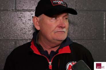 L’entraîneur-chef des Devils, Lindy Ruff, s’adresse aux médias avant le match de demain contre Los Angeles.