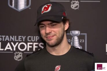 Dans ce clip des coulisses, découvrez le discours de victoire de Nico Hischier après la victoire des Devils OT contre…