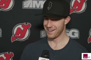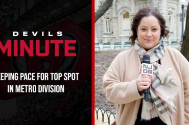 L’animatrice Catherine Bogart a des entrevues d’avant-match, des faits saillants et une couverture avant le match des Devils contre les…
