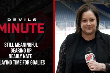 L’animatrice Catherine Bogart a des entrevues d’avant-match, des faits saillants et une couverture avant le match des Devils contre les…