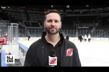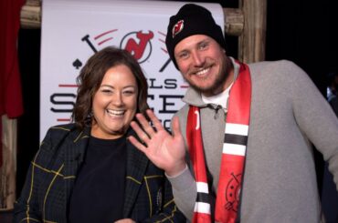 L’animatrice Catherine Bogart a des entrevues d’avant-match, des faits saillants et une couverture avant le match des Devils contre les…