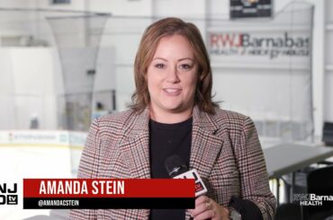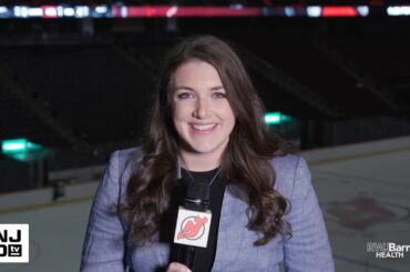 Matt Loughlin et Sam Kasan du Devils Hockey Network ont l’appel alors que les Devils entrent sur la glace pour…